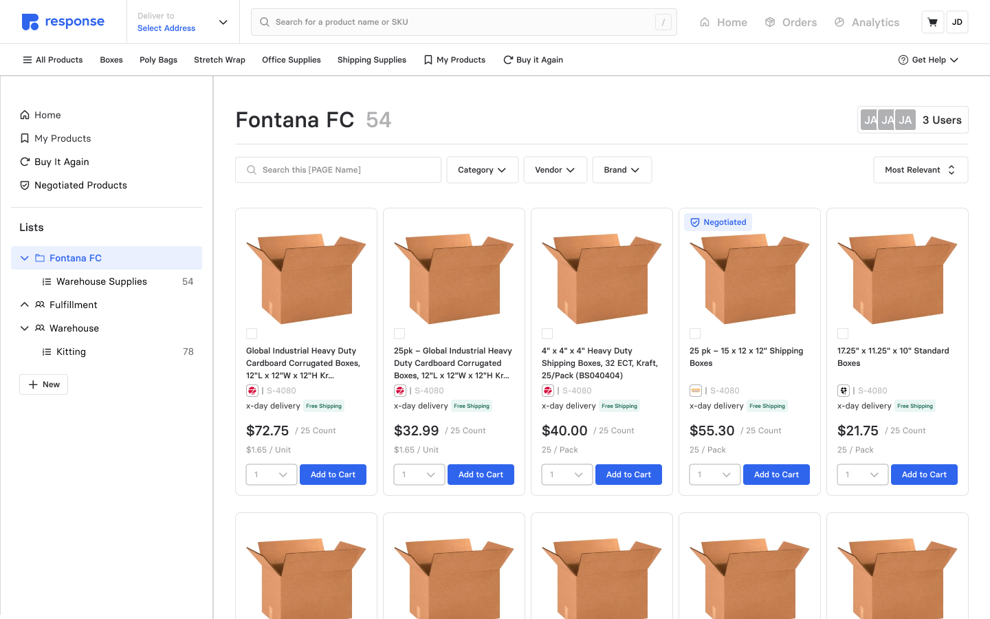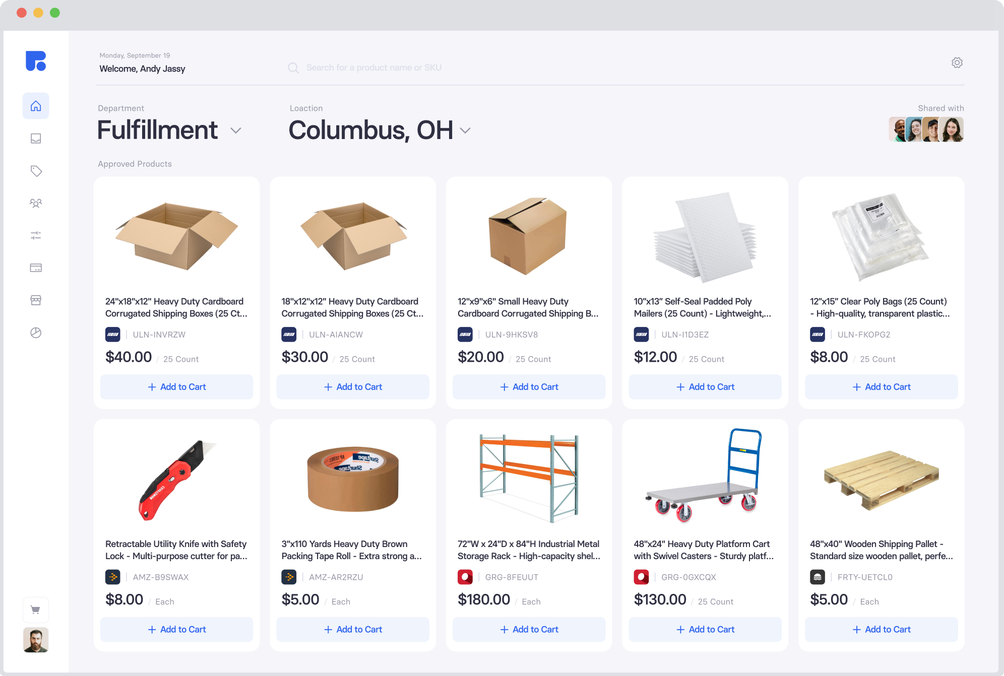 A centralized purchasing platform that controls and optimizes spend for warehouse teams.